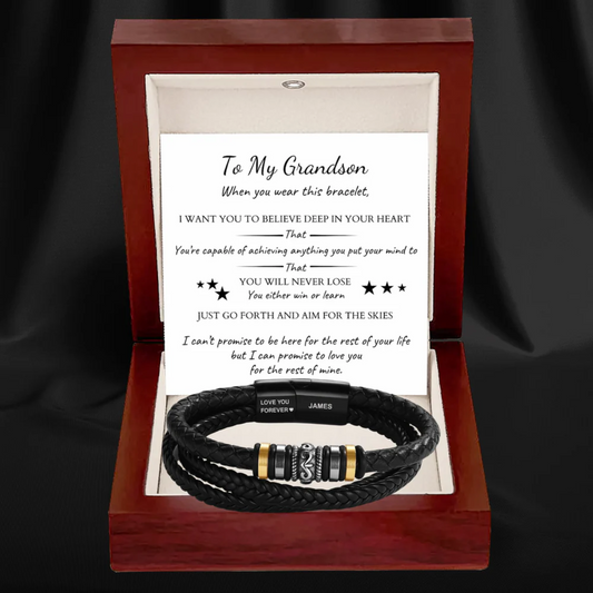 To My Grandson – ‘Love You Forever’ Personalized Name Bracelet